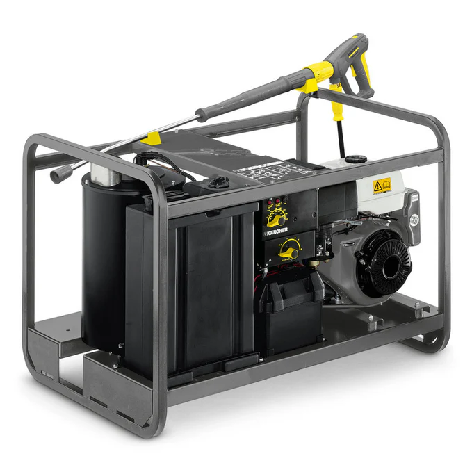Puissant, l’HDS De est équipé d’un robuste moteur diesel 4 temps et d’un démarreur électrique. Tous les éléments sont logés dans un solide châssis tubulaire en acier, conçu pour pouvoir être levé à l’aide d’une grue ou d’un chariot élévateur à fourche, qui assure une protection intégrale dans des conditions difficiles. Pour une durée de vie prolongée, le moteur est équipé d’un dispositif de réduction automatique de la vitesse qui abaisse le niveau sonore en cas d’interruption du travail. Les matériaux de qualité supérieure utilisés dans la pompe haute pression – culasse en laiton, soupapes en acier inox, pistons en inox plaqué nickel-chrome – garantissent une longue durée de vie et des performances élevées.